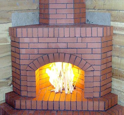 За полагане на редове от червена тухла се използва циментово-пясъчен хоросан. Невъзможно е валежите да попаднат в тръбата, тъй като това по най-отрицателен начин влияе върху ефективността на функционирането на огнището. За да изключите такива случаи, използвайте качулка от поцинковано желязо или калаен комин.