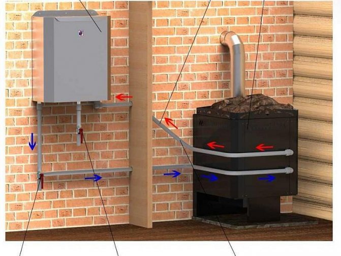 - Едновременно решаване на две задачи - отопление на парната баня и съблекалнята, както и нагряване на водата.