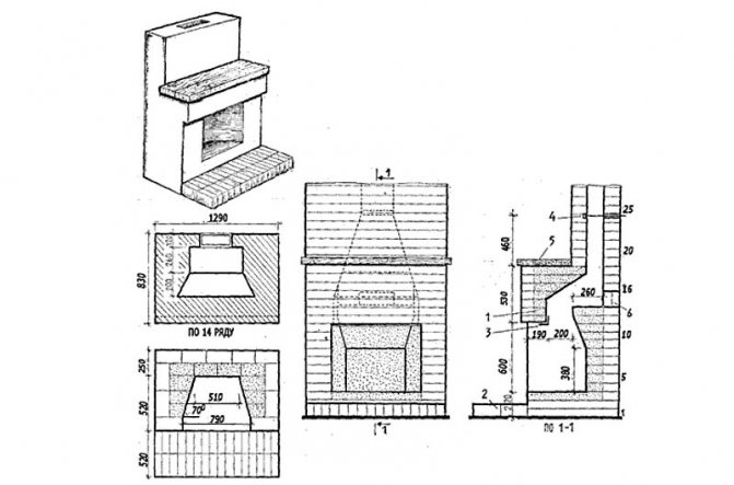 - 14-17 - има изместване на зидарията от предната страна. Това е начин за оформяне на камина.