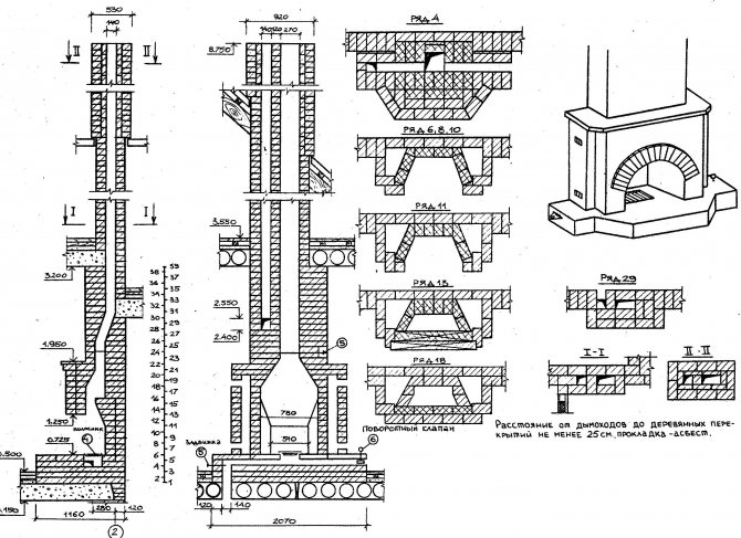 - Редове 24 и 25 предвиждат изграждането на комин с размер на вътрешния канал 14x27 сантиметра.