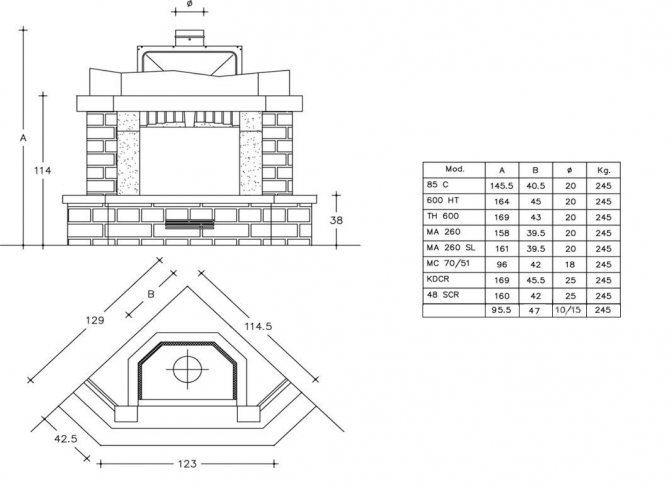 За да изградите ъглова камина със собствените си ръце, е необходимо да разработите поредица от инструкции, които ще определят хода на работата. Такива инструкции се наричат проект. Той включва описание на модела, използваните инструменти и материали, чертежи на камината в различни равнини, както и подробна схема на полагане на корпуса на камината.