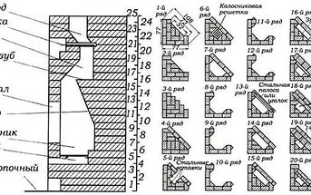 - Редове 20-22 - "hailo" (част от комина) е разположен, с размери 14x27 сантиметра. Инсталирайте клапан за дим върху горния хоросан.