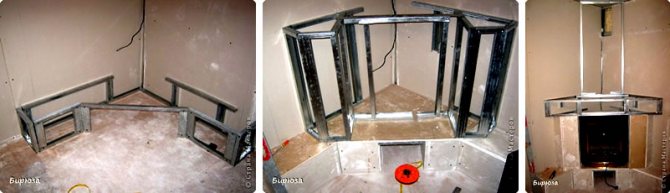 Внимание: За да създадете основа, можете да използвате бетонна конструкция. В тази версия се извършва пълнене с чакъл и трошен камък. По този начин вие също правите термична защита на пода. Такъв дизайн може да издържи не само на самия продукт, но също така ще ви позволи да облицовате ъглова камина с почти всеки материал.