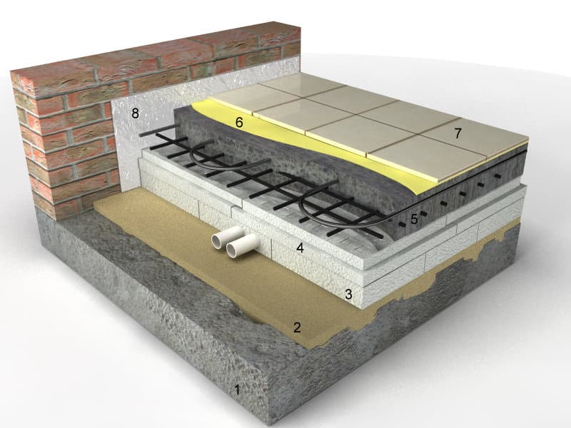 Последният, завършващ слой (1-2 см)... Последният слой кирпич ще доведе нивото на пода до необходимото ниво. Този слой е най-тънкият, така че има голяма вероятност да се напука по него. Поради тази причина този слой не трябва да се прави по-малко от 1-2 cm.