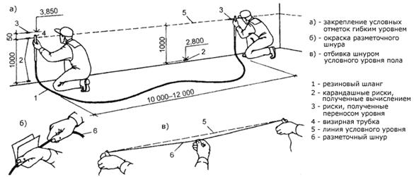 | ... които след това се свързват с плътна линия с помощта на правило или дълга линийка. Няма значение дали няма лазерно ниво. Всички горепосочени 6 операции могат да се извършват с помощта на водна основа - точността няма да бъде по-лоша. Просто на първо място, една "хоризонтална линия" на основата е много точно маркирана на стената с помощта на ниво на водата. И тогава всички измервания се правят от него и е лесно да се направи паралелно прехвърляне на хоризонталната линия към който и да е участък от стената. Но разчитането на балон, дори и най-високото качество и най-дългото ниво е нежелателно, тъй като може да възникне грешка. Добре е за контрол, но за оформление в мащаб все пак се нуждаете от нещо по-точно. | |