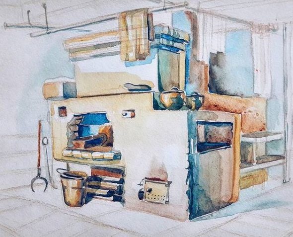 С течение на времето „черните“ устройства бяха заменени от „сиви“ единици. Охладеният дим изтичаше или през дупка в тавана, или през дървена тръба. През канала от камината излиза горещ дим и искри, които могат да предизвикат пожар на покрива, особено през летния сезон, тъй като покривите по това време са били облицовани със запалим материал - слама. Следователно, продължителното използване на печките "в черно" не означава наличие на трудности при производството на тръба за изпускане на дим, а по-скоро така нашите предци са се грижили за топлината в дома си и за неговата безопасност.