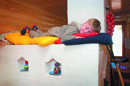 По същия начин можете да излекувате ставите и да се отървете от болките в долната част на гърба. За да направите това, трябва да оборудвате печката с печка. За първи път такава конструкция е разработена от Хенри Резник и се състои от пещ с размери 3х4,5 тухли и печка пейка - съответно 2,5х7 тухли. Тази фурна може да работи в два режима - зимен и летен - и да отоплява помещение до 40 m².