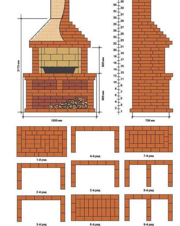 - 2-ри ред: при него започва полагането на стените, полагат се специални почиствания отпред и от лявата страна. В дясната страна на предната част на пещта се създава тава за пепел.