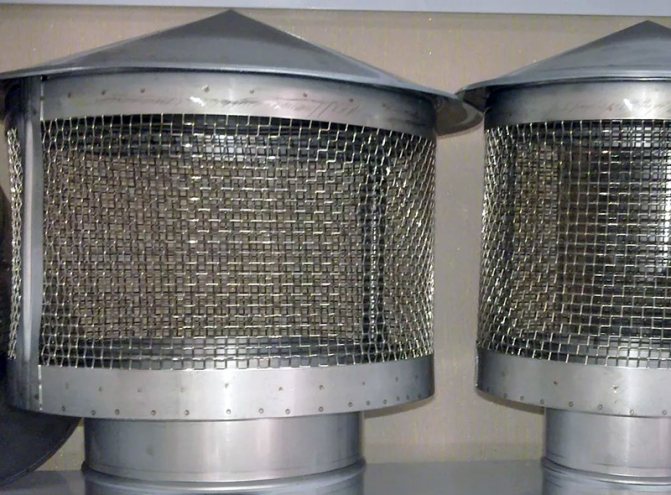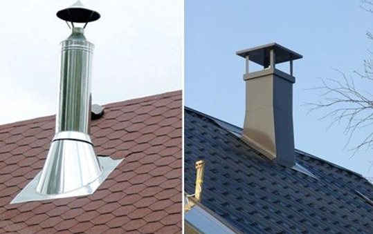 - ако покривната конструкция включва горими материали, а именно шисти, покривен филц или ондулин, изолираната тръба е оборудвана със специален искрогасител. Това е мрежеста плоча от неръждаема стомана, която обгражда комина по върха. За да се предотврати навлизането на отломки в искрогасителя, мрежата е покрита с метална "капачка".