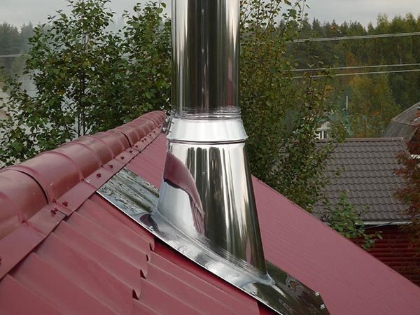 - На мястото, където тръбата излиза от покривния материал, трябва да се монтира конусен покрив или лист от неръждаема стомана с отвор.