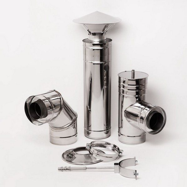 За да се създаде конструкция за отвеждане на дим от неръждаема стомана, е необходимо да се използват не само коляно и тръби, но и много други елементи, като: