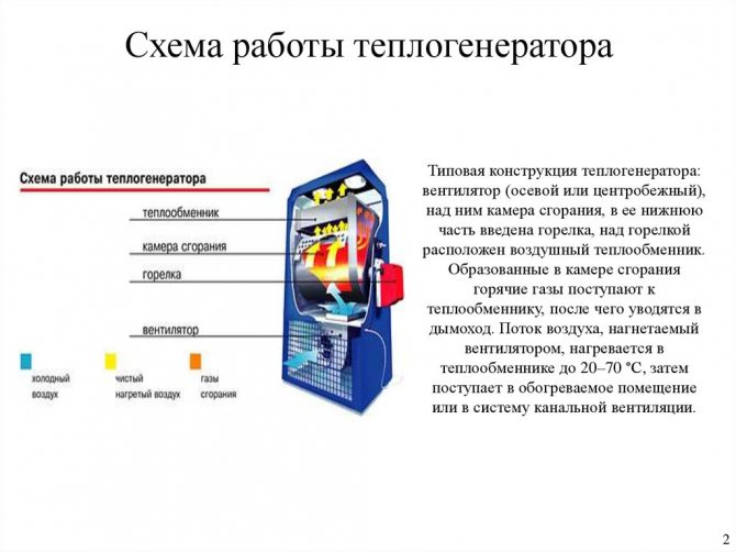 - esta opção de aquecimento distingue-se pela elevada produtividade e economia devido ao facto do ar ser aquecido não na sala da caldeira, mas directamente na sala;