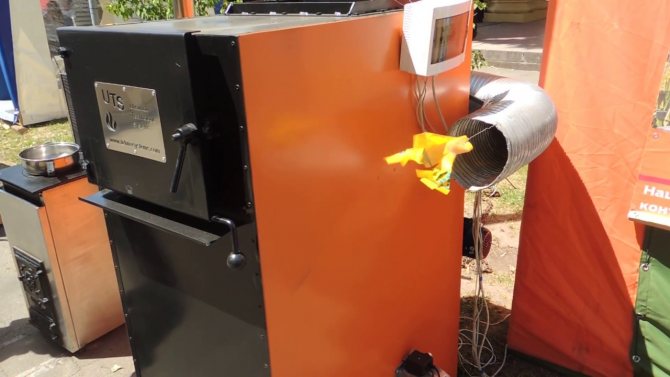 - Trocador de calor de metal... Um compartimento de onde o ar aquecido é fornecido para o exterior. Ele está localizado acima da câmara de combustão.