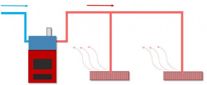 Um dispositivo de aquecimento de ar custa 3-4 vezes mais barato do que um circuito de "água". Além disso, as opções aerotransportadas não são ameaçadas pela perda de energia térmica durante o transporte devido à resistência hidráulica.