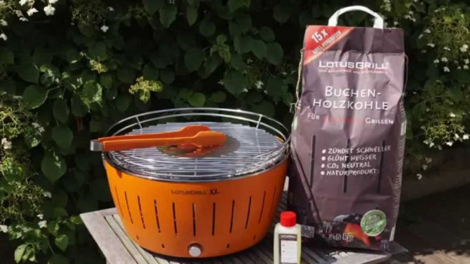 O dispositivo funciona a carvão ou briquetes, pelo que o seu funcionamento será muito económico e o mais simples possível. A lareira, protegida do contato com gotas de gordura, é garantia de máxima facilidade de uso. O ventilador é alimentado por baterias AA e fornece uma certa quantidade de oxigênio para o dispositivo, o que permite que ele regule a temperatura e acenda rapidamente (e muito silenciosamente). O importante é que as churrasqueiras sem fumaça não representem nenhum perigo para o meio ambiente.
