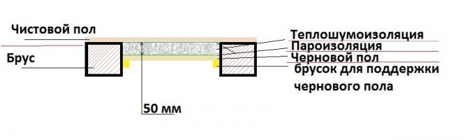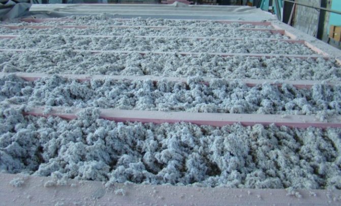 Depois de colocar as vigas, um isolador de calor é colocado. É preferível usar isolamento de celulose, mas você também pode escolher poliestireno expandido. A camada de isolamento térmico acabada é revestida com novas placas e, em seguida, o piso é colocado.