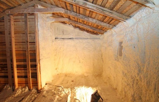 O isolamento de casas de campo pelo exterior com pulverização de poliuretano é de eficácia duvidosa, pois é difícil calcular com precisão a quantidade da composição e aplicá-la em uma camada perfeitamente uniforme. Embora muitos construtores afirmem experiência bem-sucedida com isolamento pulverizado, não recomendaremos essa tecnologia.