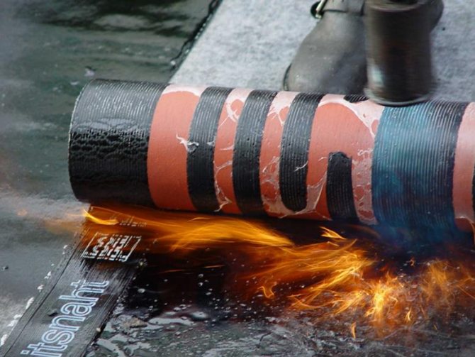 - Na etapa de assentamento da impermeabilização do rolo, dependendo das recomendações do fabricante, utilizar mástique betuminoso para colagem da lona ou utilizar outros adesivos. Os materiais de betume fundido podem exigir alguma habilidade do artesão. A teia enrolada é colocada no início da superfície a ser tratada, o lado adesivo é aquecido com um queimador de gás e a teia é nivelada. Para criar proteção de alta qualidade e boa adesão em todo o plano, você deve aquecer uniformemente o lado adesivo do material e pressionar a folha contínua contra a superfície. Deve-se prestar muita atenção às juntas das lonas, uma conexão de má qualidade pode causar problemas ao molhar as paredes ou o telhado.