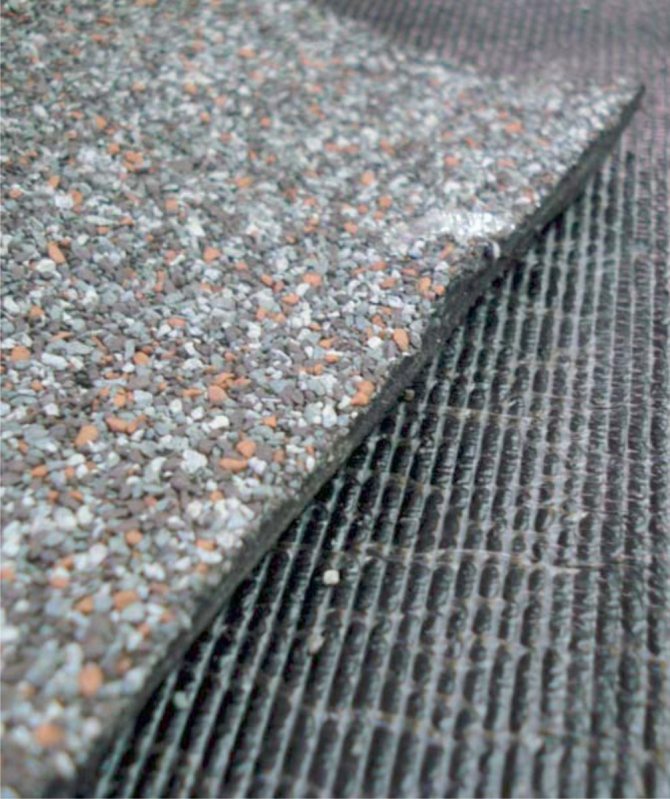 - uma pitada de lascas de pedra que protege o material da cobertura do estresse mecânico e aumenta sua resistência.
