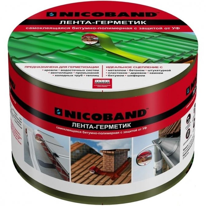 Na instalação de impermeabilizantes com fita especial, no exterior de edifícios, utiliza-se uma que tenha maior resistência aos esforços mecânicos e temperaturas extremas. A fita impermeabilizante autoadesiva "Nikobend" é feita especialmente para uso na instalação de janelas de PVC, é à base de polipropileno.
