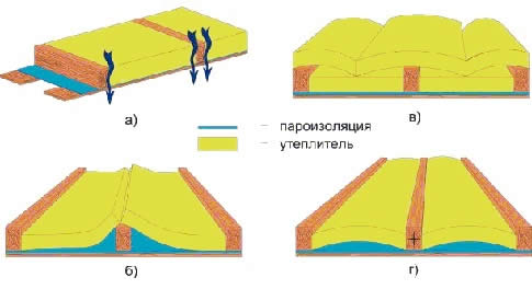 - anexar uma barreira de vapor com uma sobreposição de baixo para os atrasos, crie um obstáculo para o vapor em movimento;