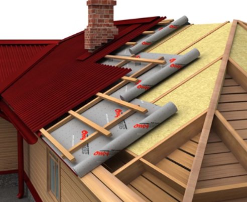 - membrana de superdifusão, cuja capacidade de transmissão de vapor é muito alta em comparação com uma barreira hídrica de filme. É colocado diretamente na camada isolante de calor, sem quaisquer lacunas.
