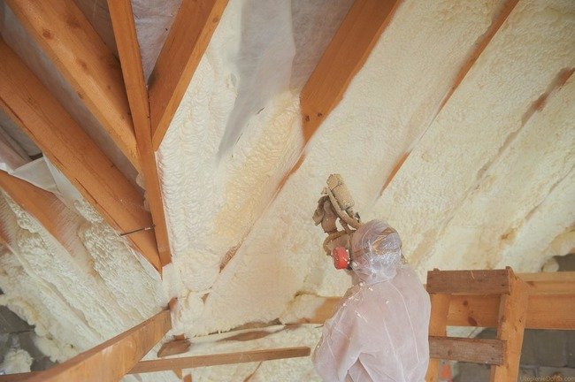 - A espuma de poliuretano é um isolamento líquido com uma condutividade térmica bastante baixa. É aplicado por pulverização sobre a camada impermeabilizante preparada. Adequado para os casos em que é necessário realizar rapidamente medidas de isolamento.