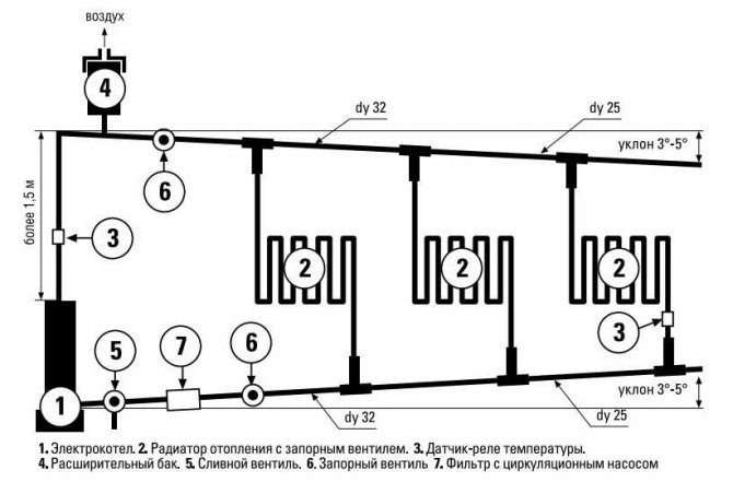 3. A conexão com a rede é realizada com fios de cobre trançados, não servidos. Sua seção transversal é selecionada com base na carga atual no sistema. Existem 2 esquemas principais para conectar caldeiras elétricas: