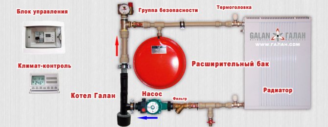 A caldeira eletrônica Galan deve ser instalada apenas na vertical. Um pré-requisito é um sistema de aquecimento de dois tubos, no qual circulará água com corrente elétrica. Se não houver um círculo vicioso, o aquecimento não será possível.