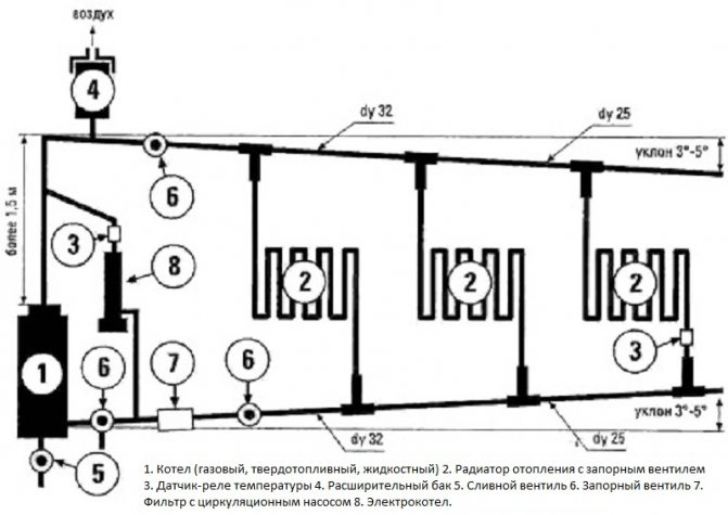 1. O dispositivo é aterrado e seus terminais são isolados. É instalado um disjuntor de corrente de 25 A. Um filtro grosso é conectado, após o qual o sistema é completamente lavado com um inibidor.