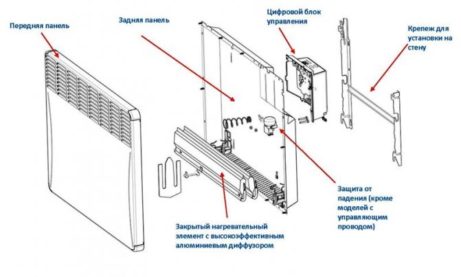 Os convetores elétricos podem ter elementos de aquecimento do tipo aberto e fechado. Ao usar um elemento de aquecimento de tipo aberto, há uma grande probabilidade de queimar oxigênio e, além disso, a destruição corrosiva da espiral do fio é possível sob a influência da umidade natural do ar.