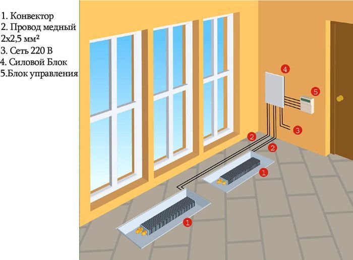 Para descobrir qual convector é melhor comprar, você precisará decidir sobre o esquema de instalação. Os fabricantes oferecem dois tipos de aquecedores domésticos:
