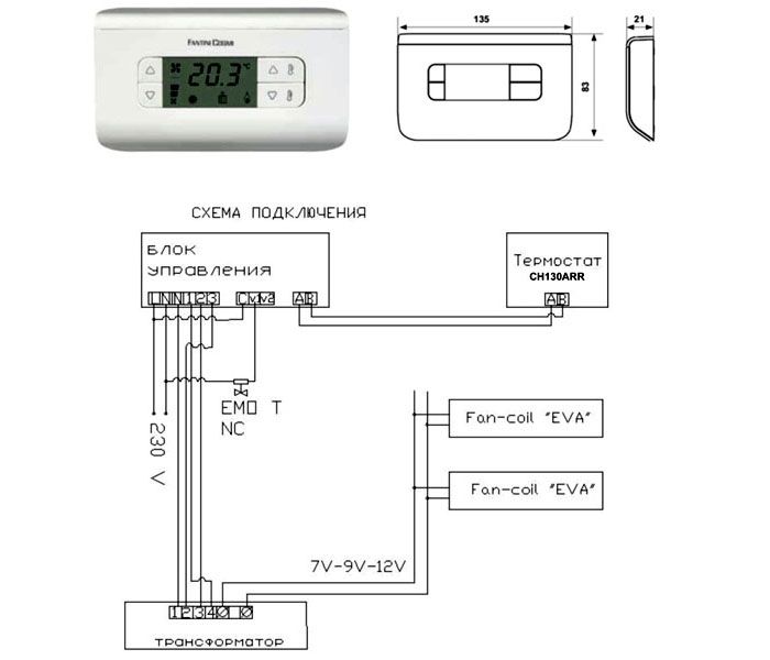 Os produtos distinguem-se pelo seu funcionamento silencioso, mantendo automaticamente a temperatura definida. O conteúdo da entrega não inclui termostato: o elemento é adquirido separadamente. Qualquer termostato de classe removível é adequado para instalação NCU... Dimensões: