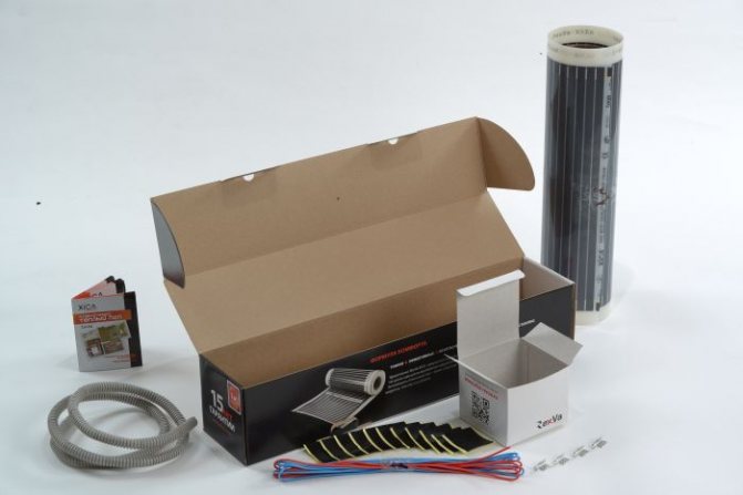 O aquecedor infravermelho de filme tem uma construção lavsan multicamadas, cuja espessura total não excede 1-1,2 mm.Dentro dos filmes lavsan, há elementos metálicos de aquecimento especiais embutidos, bem como folha de alumínio, que pode ser aquecida até uma marca de no máximo 45 graus. O material lavsan acima mencionado desempenha uma função de isolamento elétrico e de acabamento externo.