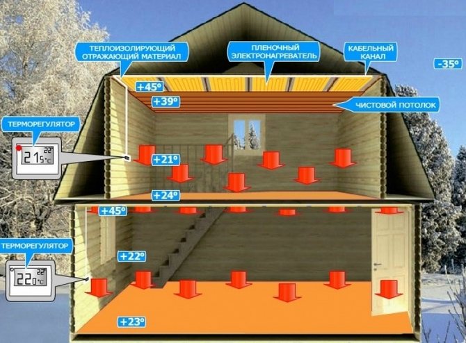 - Vale a pena dizer que o aquecedor de filme infravermelho para teto não é muito eficaz. O ar quente se acumula perto do teto e parece que apenas a parte superior do corpo e da cabeça estão aquecendo, e as pernas permanecem frias.