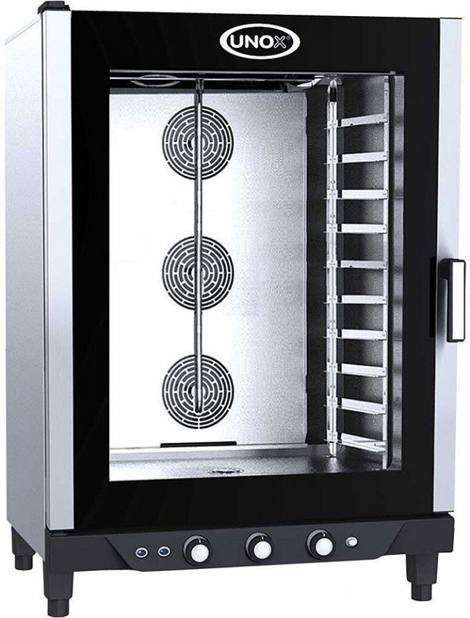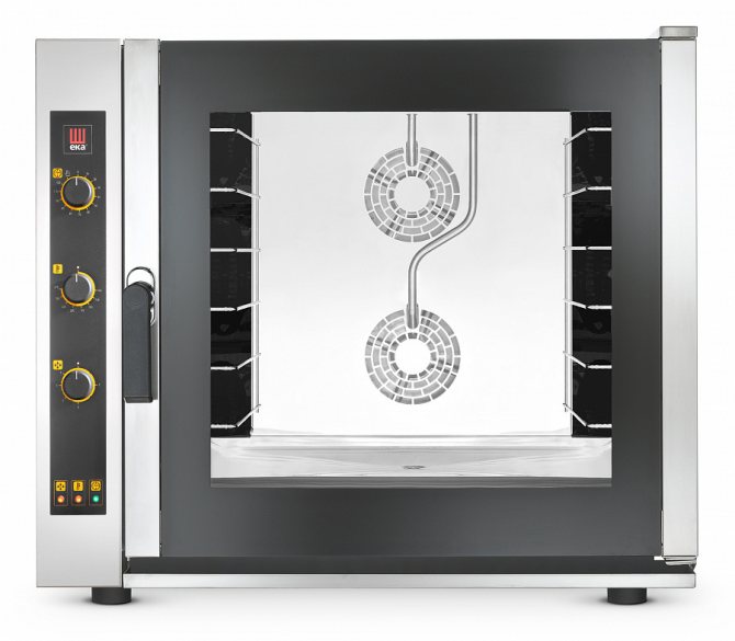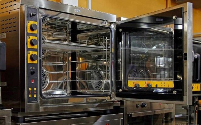 O equipamento de aquecimento profissional mais difundido baseado no efeito de convecção está na cozinha. Existem também modelos industriais, cujo comprimento, largura e altura permitem acomodar objetos de diferentes tamanhos e dimensões. A maior parte dos fornos de convecção são criados com o propósito de cozinhar pratos quentes e assar na cozinha. Uma função adicional da grelha elétrica é fornecida por poderosos elementos de aquecimento (aquecedores elétricos tubulares) localizados nos painéis internos superior e inferior da câmara de aquecimento.