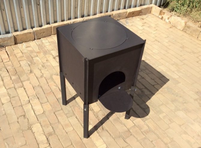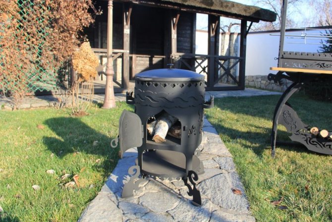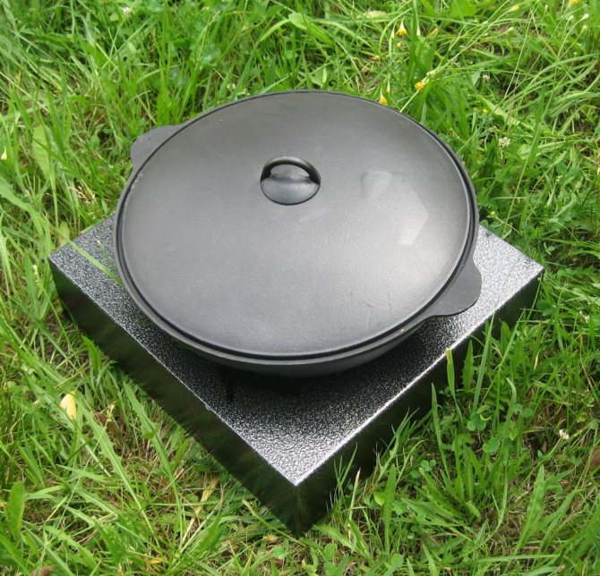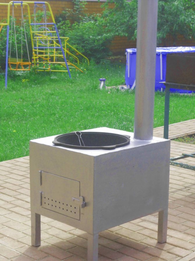 - Braseiro combinado - equipado com uma caixa de metal e uma base para um caldeirão de ferro da espessura desejada.