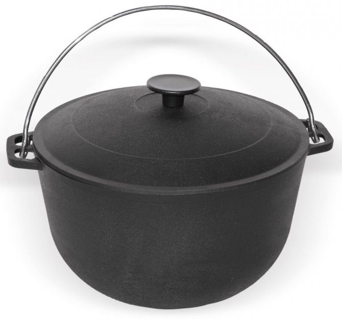 Atenção! O design do caldeirão difere de outros utensílios de cozinha a forma de sua parte inferior, como resultado, as paredes e o fundo aquecem uniformemente quando expostos ao fogo na loiça.