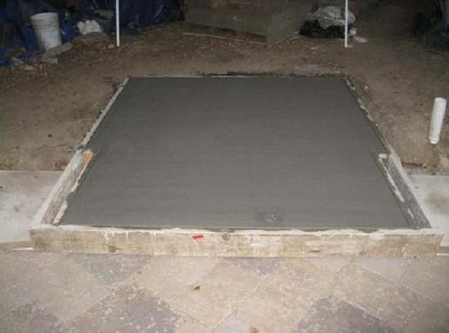 Em uma cova, com 30 cm de profundidade, é montada uma almofada. Para que a placa seja forte, é necessário reforçar a argamassa ao vazar com qualquer meio improvisado adequado (varetas, pilhas, folhas). Uma das condições importantes para o vazamento da base é a criação de uma camada horizontal em forma de plano.