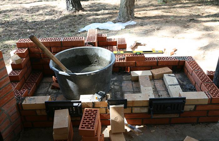 - Uma churrasqueira com caldeirão de tijolos é um enorme edifício estacionário que se presta a artesãos que sabem trabalhar com um material resistente ao fogo.