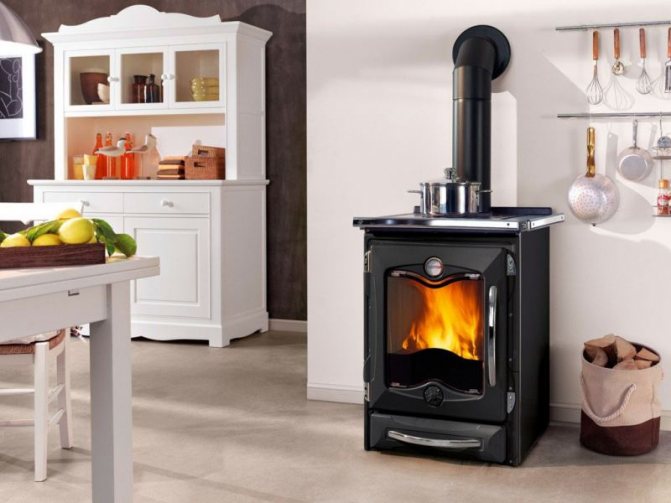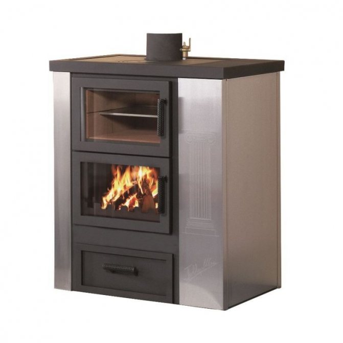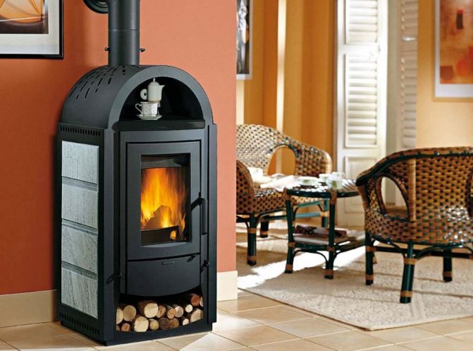 Esse fogão de metal para uma casa é considerado ideal se você só precisa aquecer um cômodo. O funcionamento de tal equipamento causa algumas dificuldades se for necessário aquecer várias divisões ao mesmo tempo. Neste caso, são observadas grandes perdas de calor.