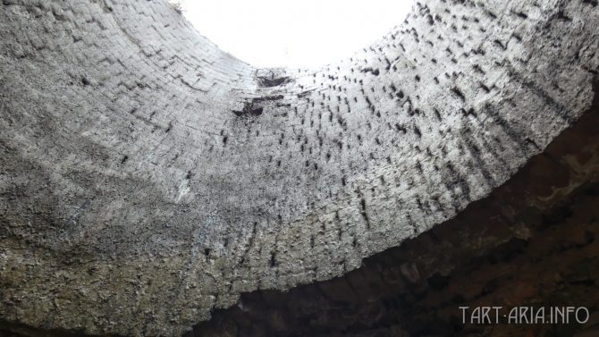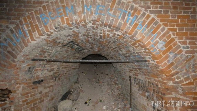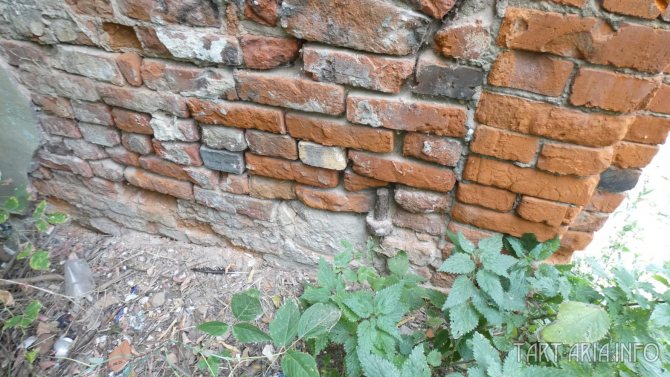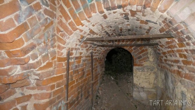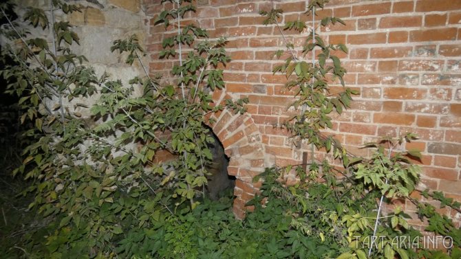 A espessura das paredes é de 106 cm, portanto, estabelecendo uma passagem em arco entre salas adjacentes dentro de um único edifício, duas buchas de tijolo foram simplesmente construídas aqui, em ambos os lados, rentes à parede principal, e entre essas buchas há muitas espaço onde os detritos se acumulam gradualmente.