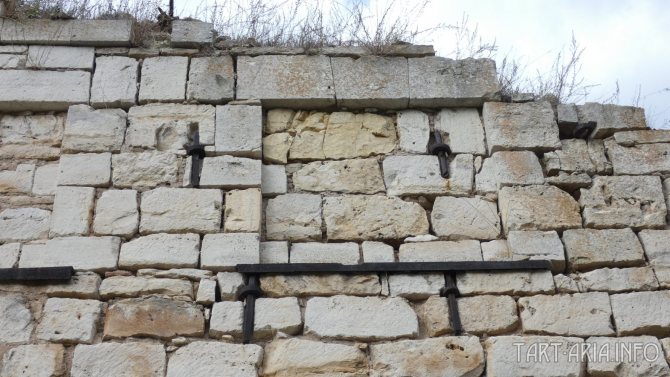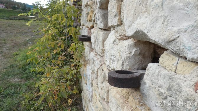 Todas as paredes são perfuradas com eles e, do lado de fora, todas as mesas são amarradas em uma única moldura de reforço. Mas esses laços forjados, nas extremidades dos laços, temos visto repetidamente em lugares associados a um determinado culto religioso.