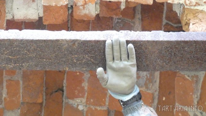 E a espessura das amarrações, você pode ver por si mesmo, em comparação com a palma da mão de Mikhail, e esta amarração em particular não é forjada, é laminada e foi colocada durante a construção da fornalha, e foi oficialmente construída em 1715.