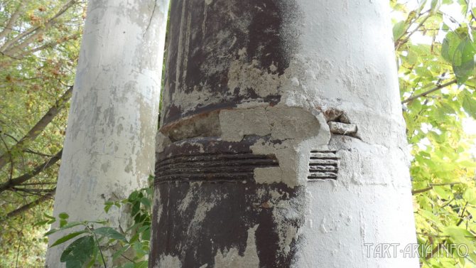 O que exatamente foi construído, essas colunas, de modernos canos de esgoto de cerâmica, porque nos tempos soviéticos havia um cinema aqui.