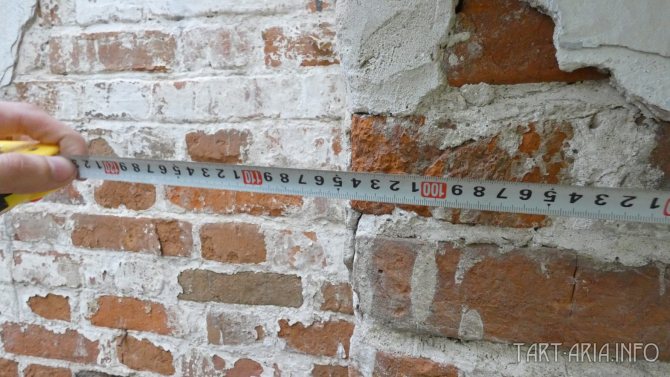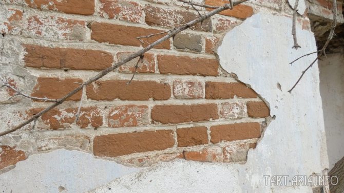 Devido a essa espessura da parede, essa abertura nem mesmo estava entupida para que o material não fosse desperdiçado. Repito, esta é uma parede interna de suporte, entre divisões contíguas do mesmo edifício, portanto, a espessura desta parede nada tem a ver com aquecimento e invernos frios, que, a meu ver, não existiam. Por que não houve invernos,]]> é explicado neste artigo]]>.