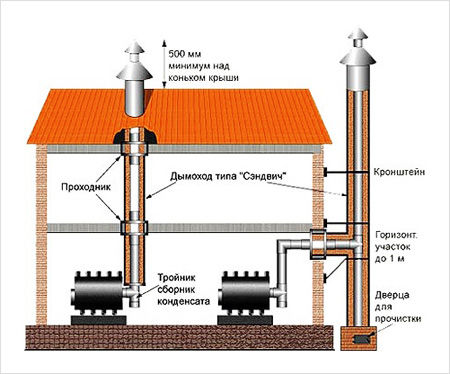 Uma condição importante é a possibilidade de instalar uma chaminé em sanduíche com as próprias mãos.