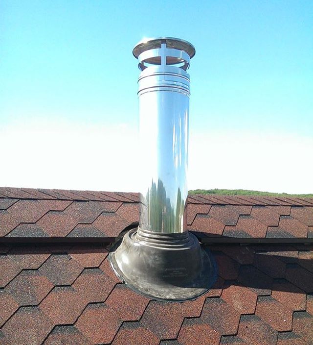 O ponto mais importante ao organizar a passagem do tubo pelo telhado será a escolha da inclinação correta. O tubo deve ser posicionado de forma que haja uma distância de cerca de 7 cm entre ele, o telhado e as vigas e, posteriormente, esses furos devem ser preenchidos com isolamento não combustível.