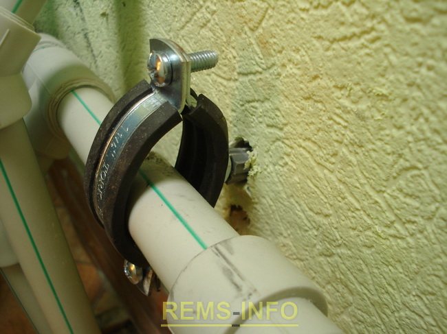 É melhor fixar os tubos contra a parede usando braçadeiras especiais para tubos de polipropileno. O vizinho decidiu o contrário e consertou os canos de uma maneira diferente. Este foi o seu erro.