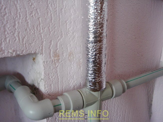 Os canos internos, em minha opinião, não exigem isolamento e isolamento adicionais, embora alguns de meus vizinhos tenham feito embalagens de polipropileno revestidas de folha de alumínio para canos. Segundo eles, isso é necessário para que menos calor entre nas paredes. Julgue por si mesmo como é exteriormente ...